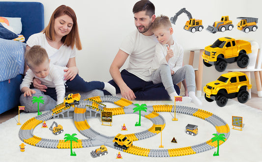 RaceCraft™ - Construction Racing Track Set (100+ Pieces)